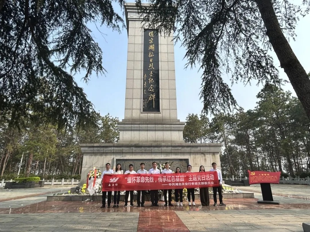 永业行孝感分部开展“缅怀革命先烈,传承红色基因”主题党日活动 2024-04-01 为缅怀革命先烈,传承红色基因,加强党员的党性教育和革命传统教育。2024年3月31日,中共湖北永业行孝感支部委员会赴安陆市赵家棚抗日烈士陵园开展“缅怀革命先烈,传承红色基因”主题党日活动。永业行孝感分部总经理梁小虎,孝感分部支部书记、副总经理潘娟以及分部全体党员、员工代表参加了本次活动。   青山有幸埋英烈,苍松翠柏映忠魂。安陆市赵家棚抗日烈士陵园内气氛庄严肃穆,烈士纪念碑巍然矗立,见证着无数烈士们的英勇事迹和崇高精神。在这里,全体成员列队肃 MORE