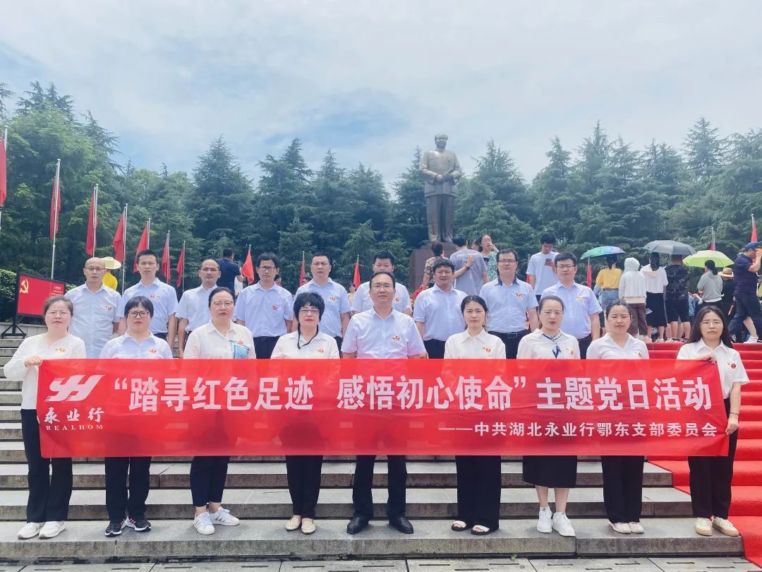 为庆祝中国共产党成立102周年,6月10-11日,中共湖北永业行鄂东党支部(下称“鄂东党支部”)组织全体党员、入党积极分子、管理团队等近20人赴湖南长沙、韶山开展“踏寻红色足迹,感悟初心使命”主题党日活动,通过缅怀伟人、重温入党誓词、参观纪念馆等形式,传承红色文化基因和革命精神,进一步坚定理想信念。