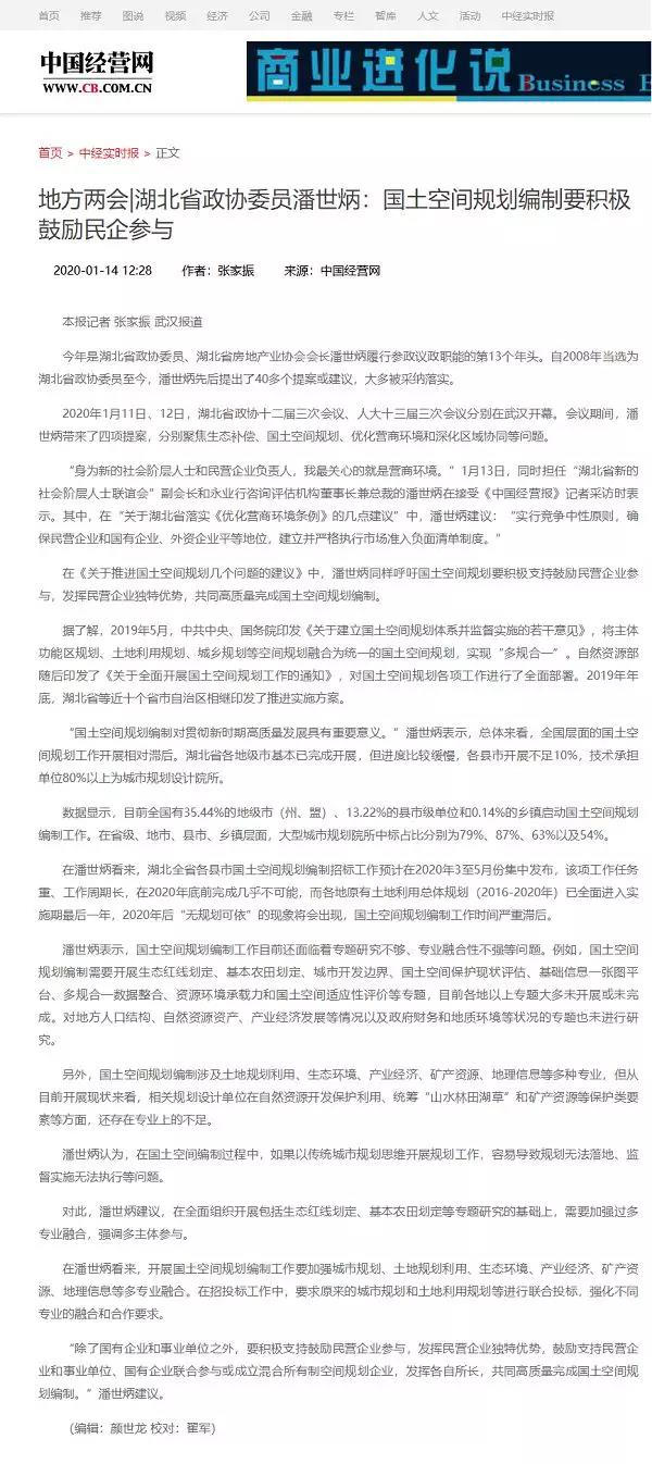 湖北省政协委员潘世炳:国土空间规划编制要积极鼓励民企参与